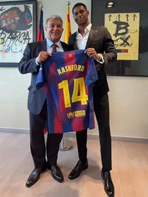 巴萨官方宣布,拉什福德以租借身份加盟球队,并特意给他披上了传奇的14号球衣。在一段视频中,拉师傅与巴萨主席拉波尔塔携手举起球衣,脸上洋溢着灿烂的笑容, caption 则写着“我们的新14号”。表面上看来,这一切都显得热血沸腾,但细想之下,这笔交易背后其实充满了算计。